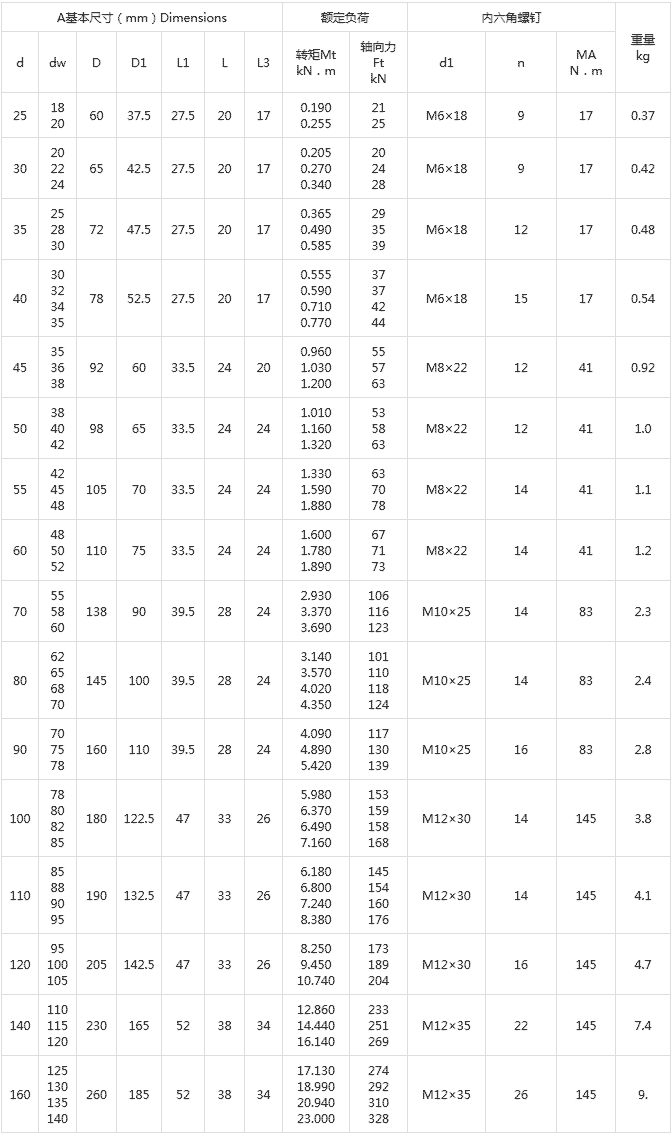 Z20型鎖緊聯結盤的基本尺寸 (按JB/T 7934-1999生產)