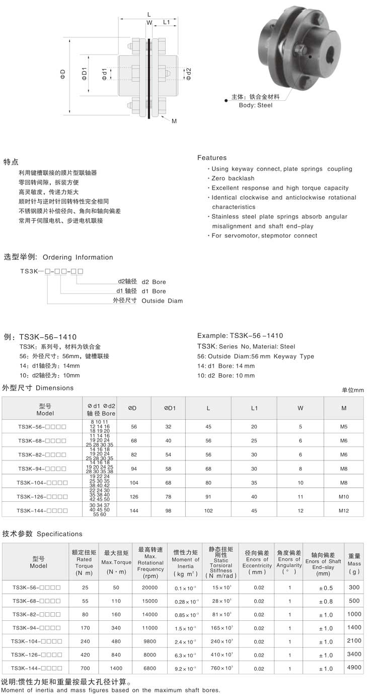 TS3K鍵槽法蘭膜片聯軸器產品介紹: