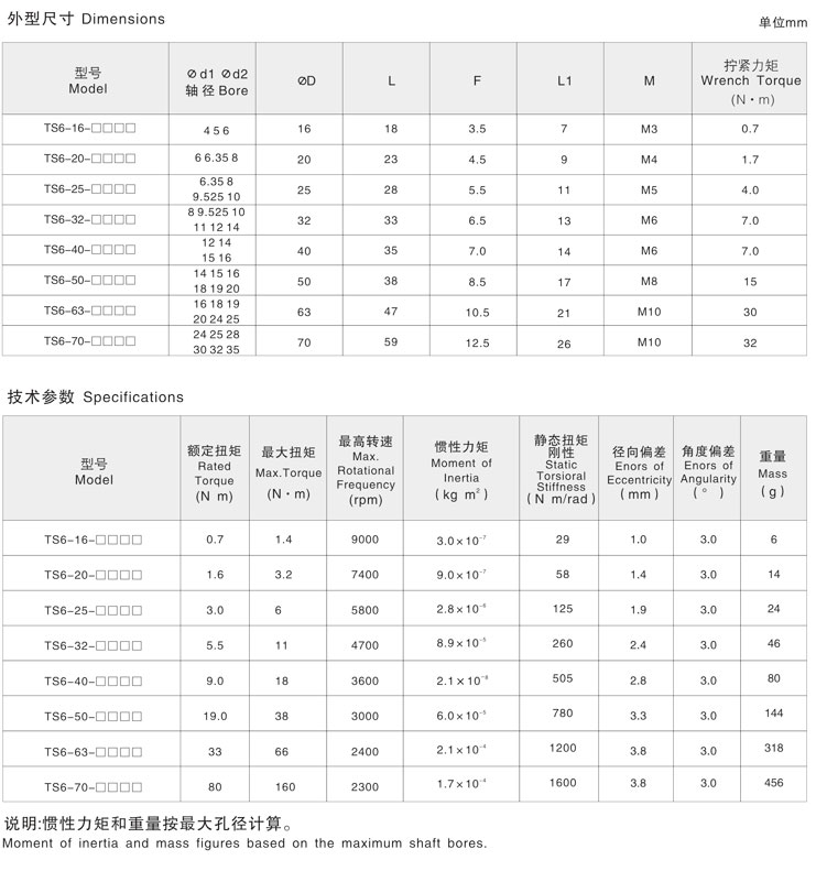5. 剛性聯(lián)軸器兩端不同孔徑大小的產(chǎn)品型號也備有庫存