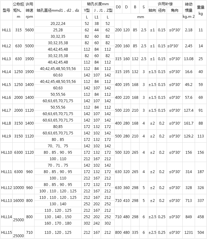 HLL型-彈性柱銷聯軸器基本參數和主要尺寸