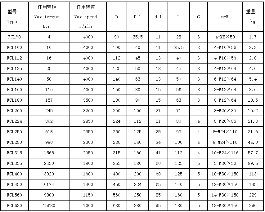 FCL型彈性套柱銷聯軸器的特點是結構簡單,安裝方便,更換容易,尺寸小,重量輕,因而得到廣泛使用,如若安裝調整后能保持兩軸相對位移量在規定的范圍內,則聯軸器會有滿意的使用性能和較長的工作壽命。因此能廣泛用于載荷不大,由電動機驅動的各種中、小功率傳動軸系中,如減速機、起重機、壓縮機、輸送機、紡織機、卷揚機、球磨機等。